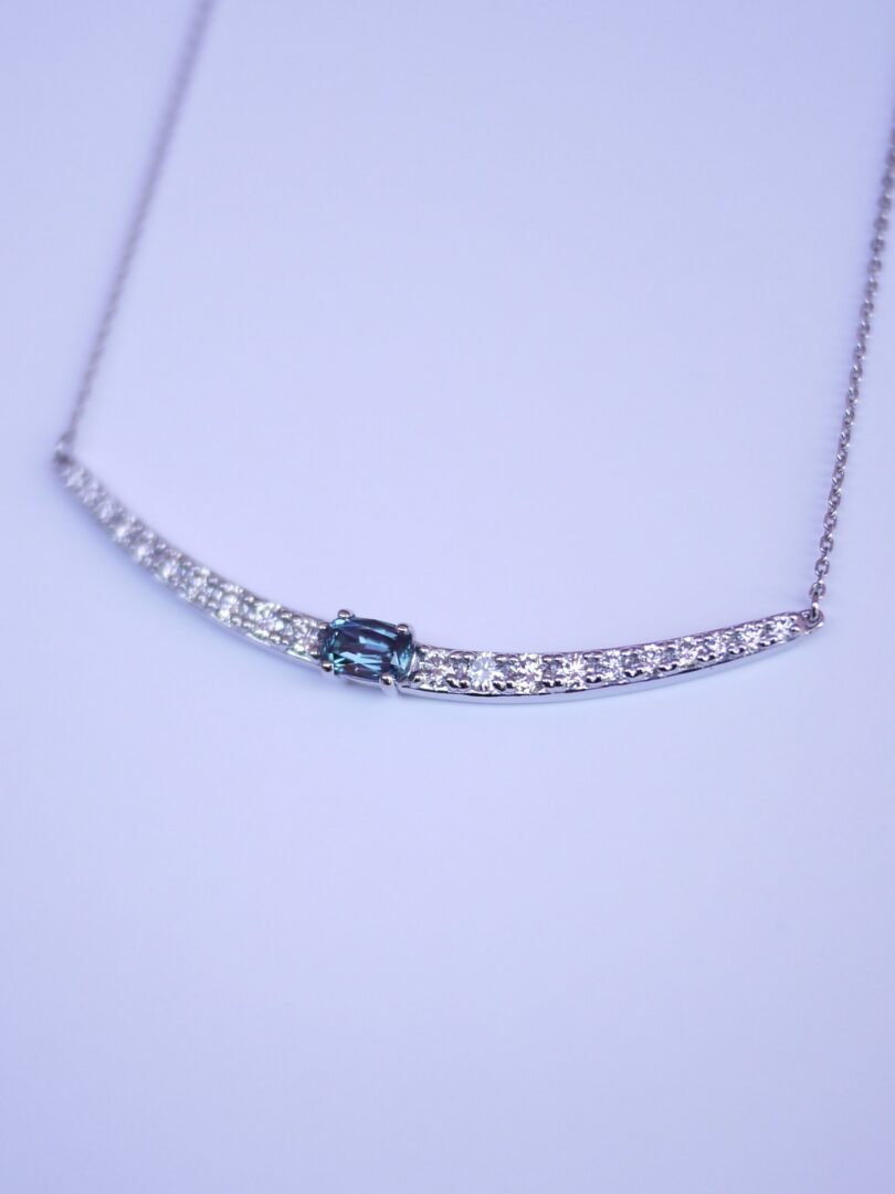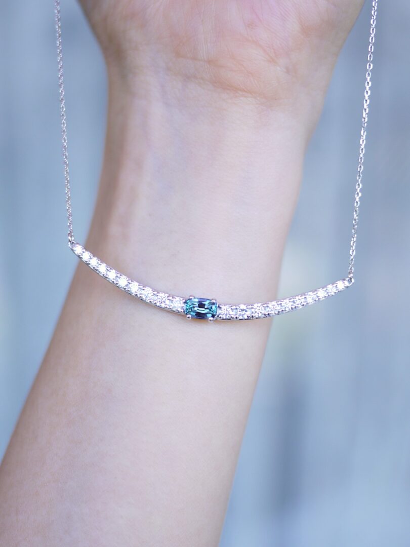 デコルテに輝くレアストーン×ダイヤの組み合わせ