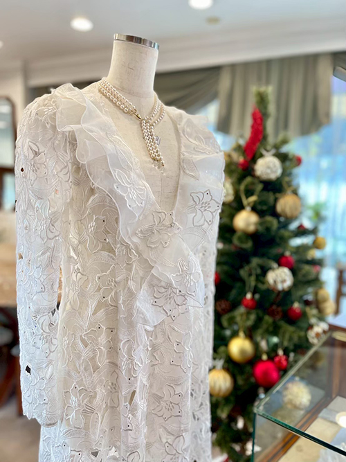 オーガンジー刺繍のドレス羽織り