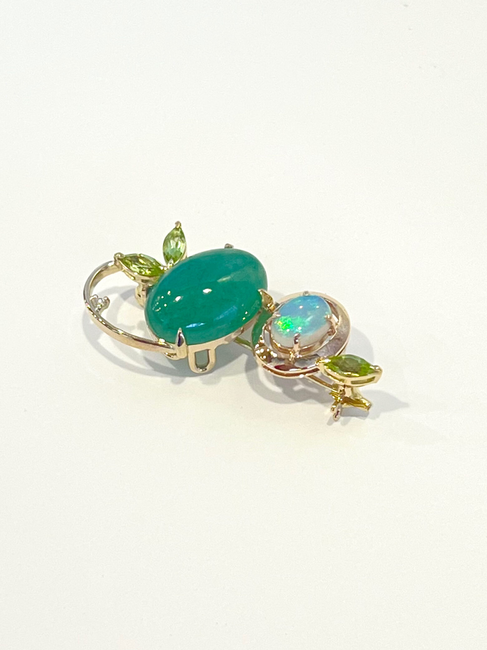 素材:K18イエローゴールド、お持ち込み石、ペリドット、ダイヤモンド